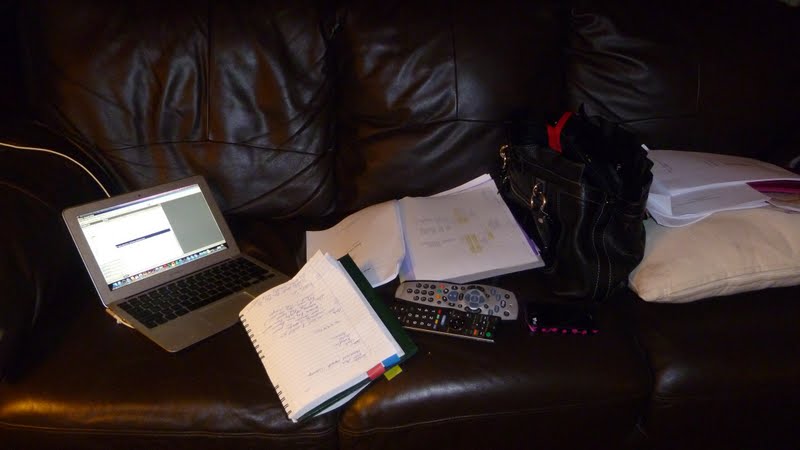 It's lovely being in England, but it's the same old stuff, just a different environment...this is my evening office today - actually very similar to my evening office at home!!